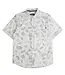 Party starter! Casual fit, short sleeve button up shirt, stand collar with recycled polyester interior logo jacquard tape, single chest pocket, dyed to match pearlized buttons with satin finish, back bias cut yoke with center back box pleat, curved hem.