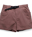 Semi fitted mid-rise short, elastic waist with built in webbing belt and center release buckle, button and zip fly, half-moon pockets, gusset, double needle reinforced seams.