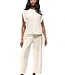 High-waisted wide-leg cropped pants with two pockets, one of which is secured with a zipper.
